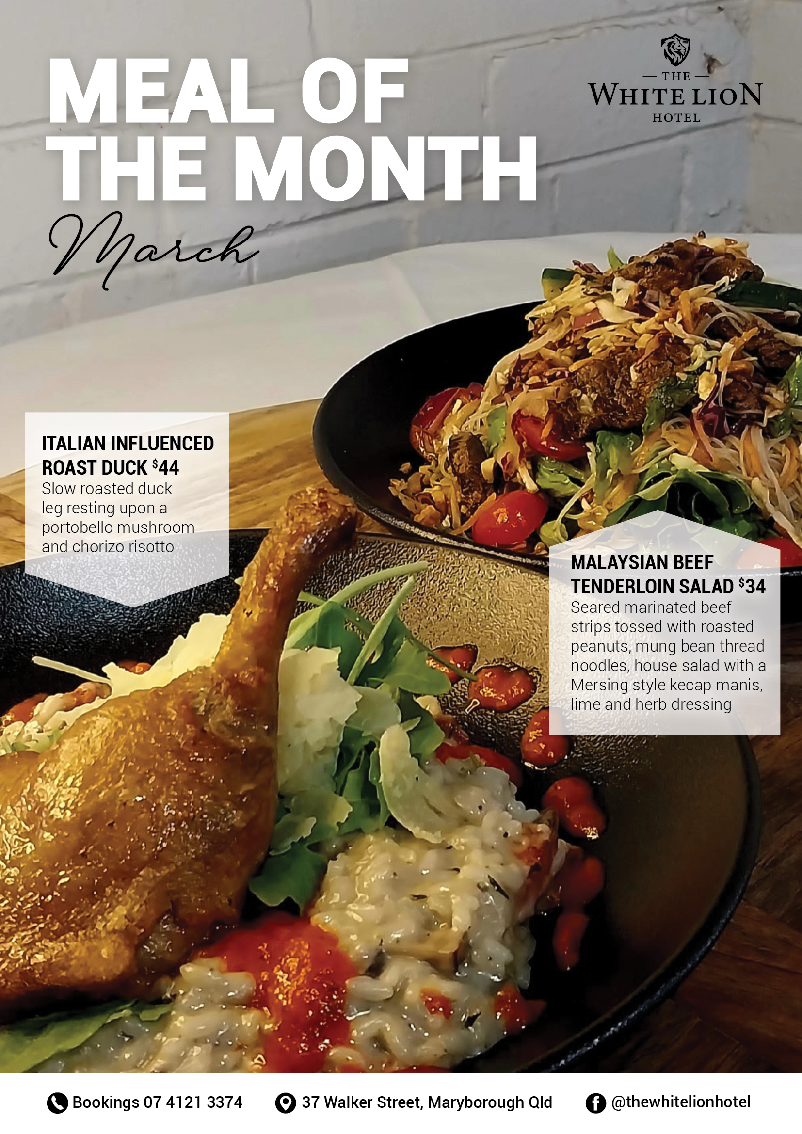 We’re open 7 days for lunch and dinner, so grab your friends and family or work colleagues and come in and enjoy an amazing meal at the White Lion Hotel.